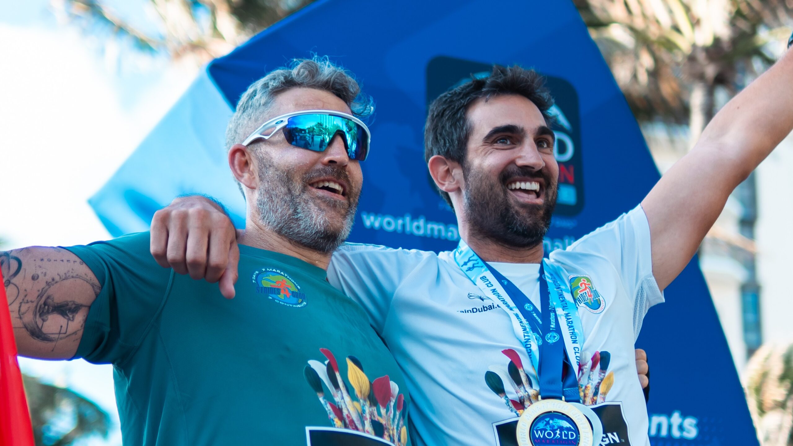 We were very fortunate to have The Brain & Performance Centre, A DP World Company help us in Dubai. Not only were the physiotherapists at the run prior, they helped us both during the race (like a Formula 1 pit stop on the course) they also prepared to the minute a recovery session in the Hyperbaric suites with extra recovery deep tissue massage that for certain allowed us both to complete the next set of marathons. Our gratitude to the team at The Brain & Performance Centre is almost uncomprehendable. They are as much a part of this achievement as us.