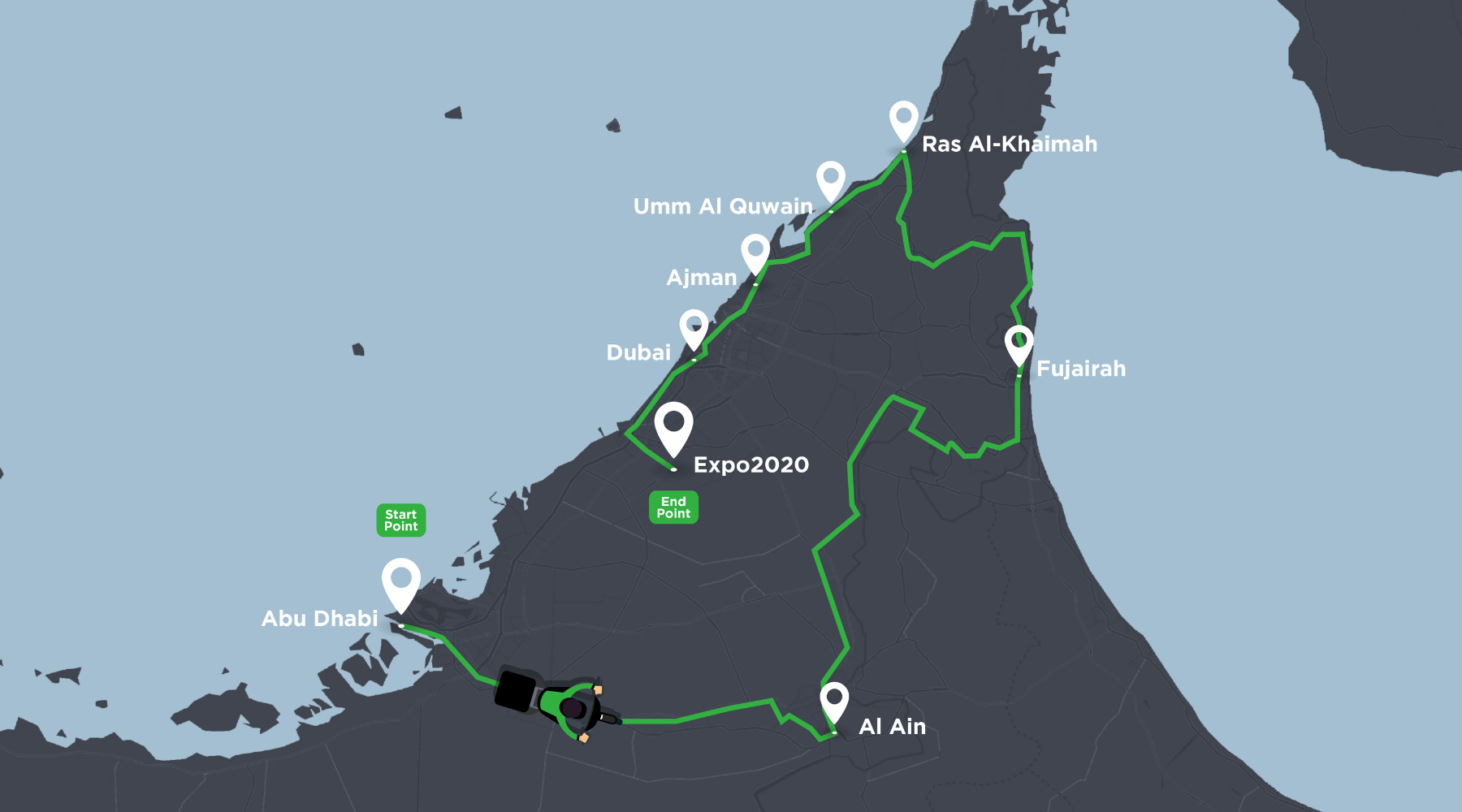 Abdo accepted the challenge to embark on the trip by riding Terra’s electric motorbike and experiencing its contemporary battery-swapping solutions. He began his journey in Abu Dhabi on the 25th of November. He completed it by arriving at Expo City Dubai in time for the first day of COP28 without a single charge by utilizing Terra’s battery-swapping concept.