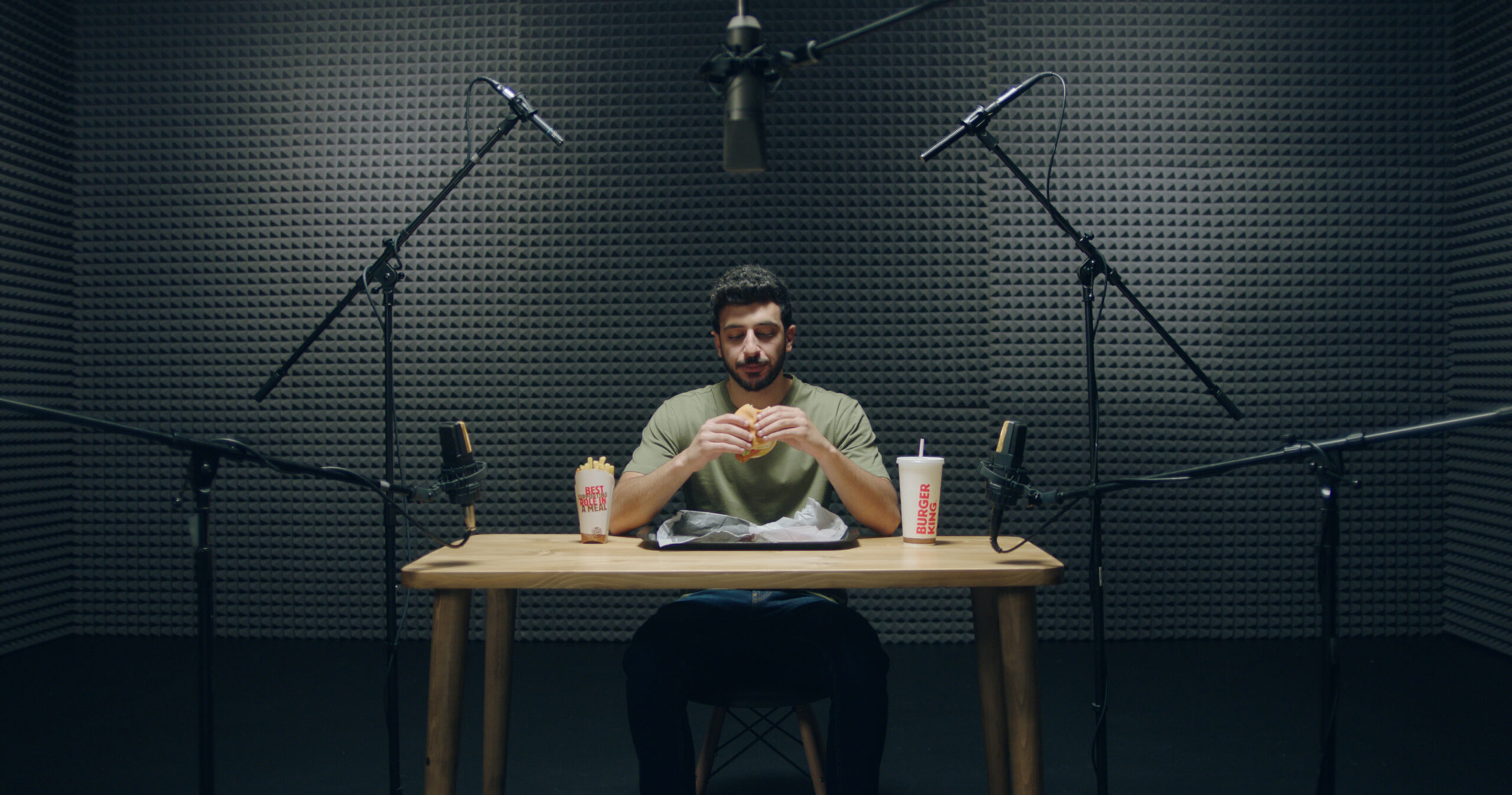 In the latest ad, an actor is seen drawing a tray with the meal towards him, and slowly biting into the sandwich. The 45-second cinema spot, with sound design by Elie Akl, highlighted the sensation of the experience.